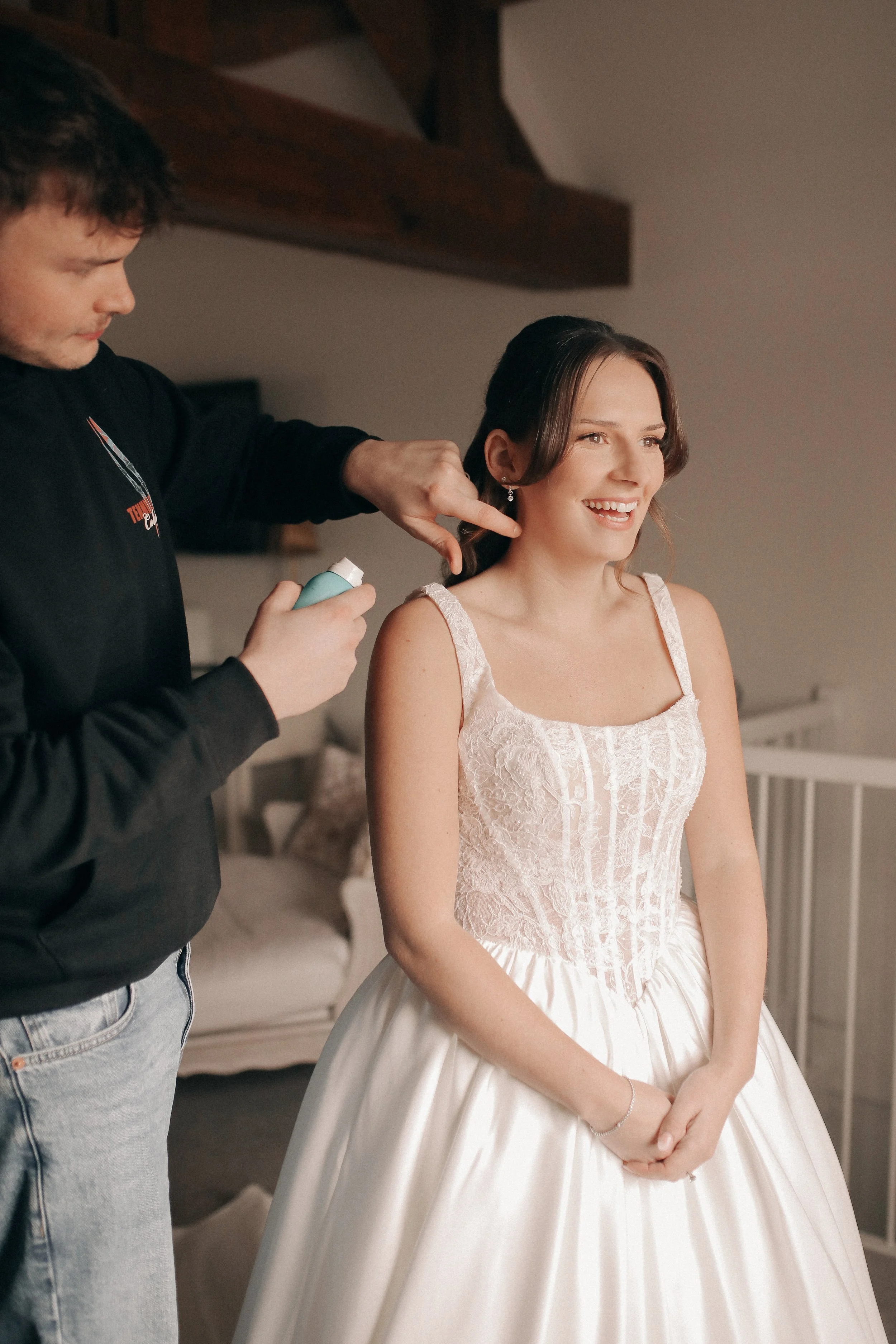 “From the second Nathan walked in, his bubbly energy instantly put everyone at ease. My hair turned out absolutely amazing, better than I could've ever imagined. It lasted from the ceremony all the way through the night. I felt so confident and beautiful all day and I'm beyond grateful I chose Nathan for my wedding.”